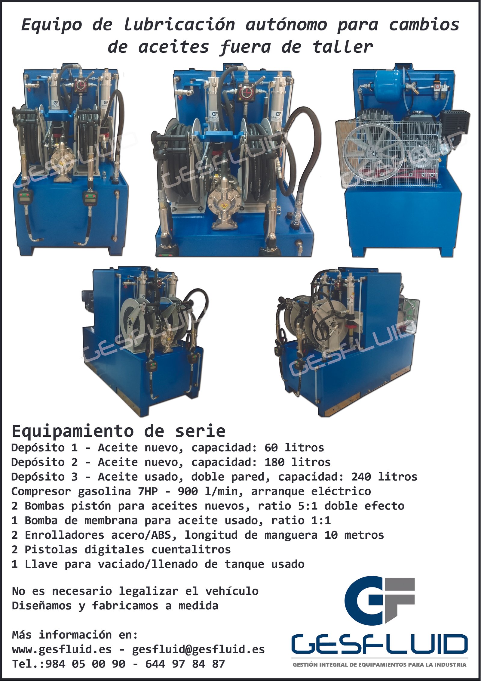 2 Tanques independientes para aceites nuevos, capacidad total: 240 litros